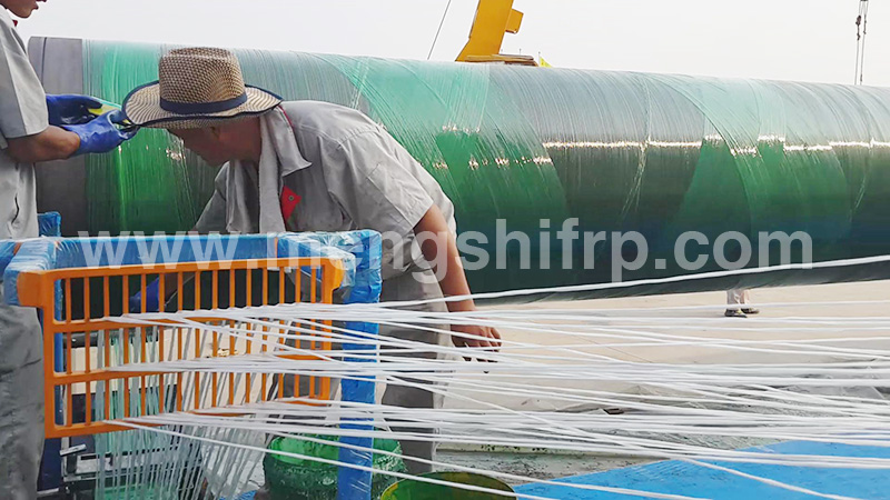 第三層:玻璃鋼保護(hù)層用機(jī)械濕法纏繞制作而成。其作用一是保護(hù)聚氨酯保溫層免遭機(jī)械硬物破壞,二是防腐防水,它的耐氣候性、耐酸性、耐海水性較好,但是,樹脂必須用306#、191#、189#、196#等不飽和樹脂。玻璃纖維及布必須用中堿或無堿纖維紗,禁止使用土堝拉絲而成的含堿量較高的纖維紗,以確保產(chǎn)品質(zhì)量。