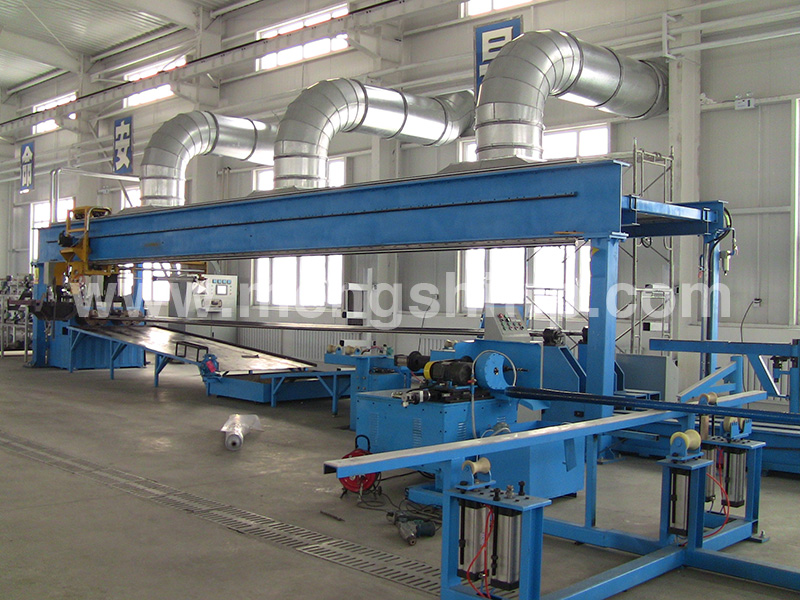 一、該設(shè)備由一條二工位或者4工位微機(jī)控制纏繞機(jī)組、鋼制管模具蒸汽內(nèi)加熱及水冷脫模自控系統(tǒng)、以及輔助設(shè)備等組成??缮a(chǎn)管徑為2"~28"(DN50~DN700),單根管長9.15或12m。生產(chǎn)線設(shè)計年產(chǎn)量180 km(以2"管、工作壓力7MPa,每天16小時工作,每年按300天計算)。