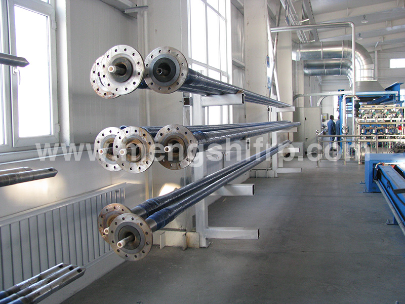 玻璃纖維浸潤樹脂后在鋼制管模具上按預(yù)先設(shè)計計算好的纏繞角進(jìn)行螺旋纏繞,*終形成管體的結(jié)構(gòu)。管體的陰螺紋是在纏繞管體過程中在管端纏繞成型(靠管模具實(shí)現(xiàn))。